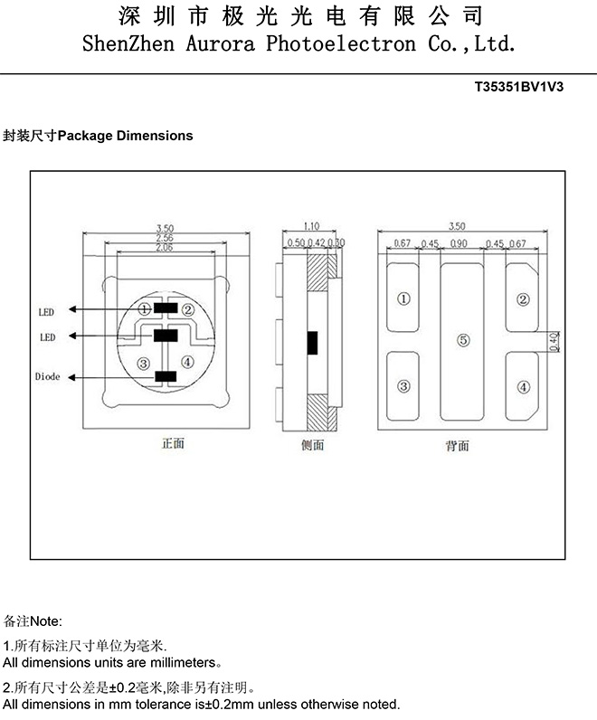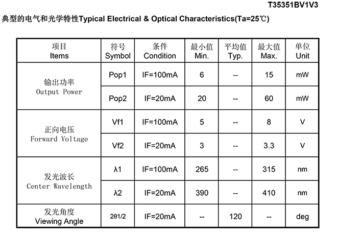 極光新品公告——1W 3535紫外雙色雙晶殺菌燈