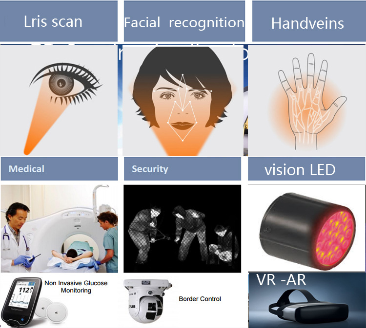 深圳市極光光電有限公司,專業(yè)研發(fā)生產(chǎn)高清紅外LED燈(如850/940紅外發(fā)射燈,超高亮紅,黃,藍,綠,紅黃藍綠白交通信號,貼片0603,0805,3528,2835,50503020大功率紅外LED燈,5050紅外線發(fā)射管。主要用于;游戲機、投幣機、遙控器、各種安防設(shè)備、紅外線像頭、電子儀表,電表,水表,鼠標(biāo),鍵盤,高清網(wǎng)絡(luò)攝像頭,車載后視,紅外車載攝像頭,交通信號燈紅外攝像頭,醫(yī)療保健設(shè)備.紅外相機,無線鼠標(biāo)遙控機,室內(nèi)照明,景觀燈飾,背光源,廣告與標(biāo)志……廣泛應(yīng)用于樓宇對講、安防監(jiān)控、錄音筆、車載DVDV、筆記本電腦、醫(yī)療設(shè)備、手機、電話機、耳機、對講機、收錄機、聲控?zé)艏奥暱赝婢叩取1舅鹃L期供應(yīng)850紅外燈正品,正芯,各角度型號正常供應(yīng)8mm圓頭紅外發(fā)射管型號:IRP8013C2無色膠體(也可做有色膠體IRP8013T2,藍色膠體,IRP8013F2,黑色膠體)波長:940-950nm,840-850nm發(fā)射距離:8-15米,15-20米,30-100米以上工作電壓:940電壓為1.1-1.3V850電壓為1.45-1.55V工作電流:按照芯片大小決定10mil芯片為30毫安12mil為50毫安14mil為80毫安16mil為100毫安40mil芯片為300毫安42mil芯片為800毫安發(fā)射角度:15°、30°、45°、60°90°120°140°度適用于小家電,開關(guān),電動牙刷,玩具,醫(yī)療器械,遙控器和夜間監(jiān)控器(攝像頭)特性:體積小,光度強適合在室內(nèi)外及高溫度與低溫度下工作。